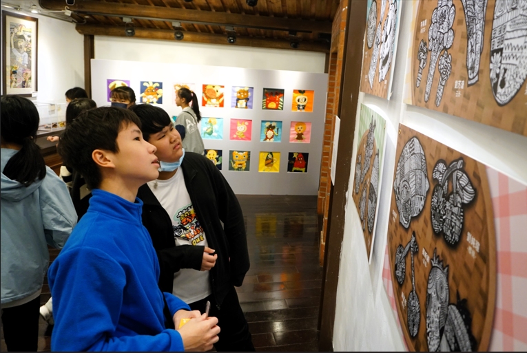 另外,美術班四年級王同學對於這次展覽也表示,雖然現在超市林立,購買日常所需食材方便,但是直到現在,假日時常仍會與家中長輩一大早到學校附近市場採買,傍晚時分則會到黃昏市場走走逛逛,夜晚有空閒時會與家人走訪夜市吃美食。為了這次展出在課堂上透過陶藝、水墨、版畫和水彩等不同的藝術媒材,從不同角度呈現市場的獨特氛圍和細節,並且體驗藝術創作的多樣性和樂趣。